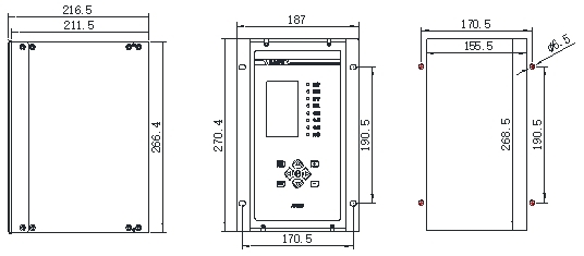 ARB6弧光保护装置安装时需考虑开关柜安装空间,与保护范围内电源进线回路的TA回路连接、保护跳闸回路连接,原则上采用就近安装方式,避免TA采集回路、跳闸回路连线过长,般安装于主变压器中、低压侧进线柜或TV柜柜门上,建议采用面板开孔安装。